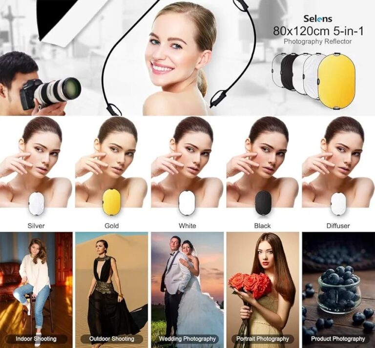 ريفلكتور 110 سم 5×1 – مجموعة عاكسات ألوان متعددة للاحتراف والتحكم الكامل بالإضاءة
