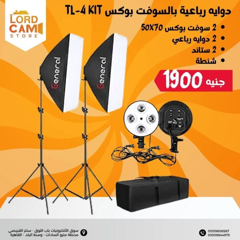 طقم كامل دوايا رباعي مع سوفت بوكس – إضاءة ناعمة ومحترفة لجلسات التصوير
