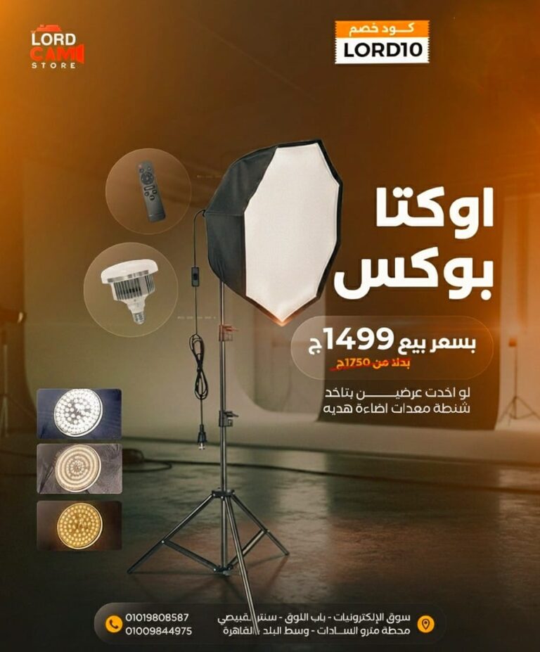 مجموعة أوكتا بوكس مع لمبة إضاءة 150 واط – إضاءة ناعمة ومحترفة لجلسات التصوير