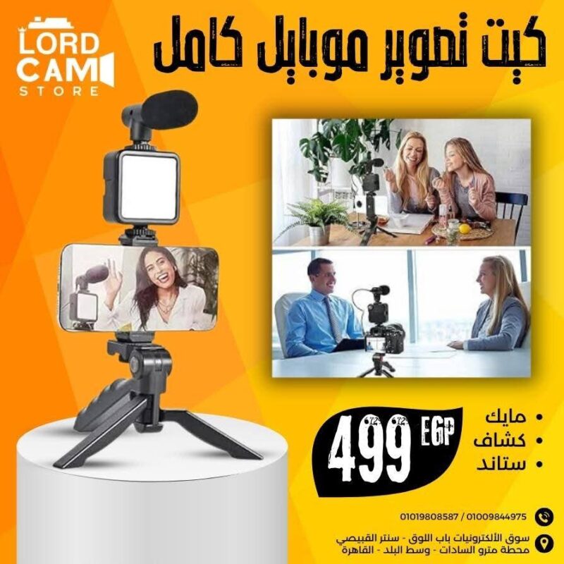 كيت تصوير موبايل وكاميرا متكامل – إضاءة، ميكروفون، وحامل ثلاثي احترافي