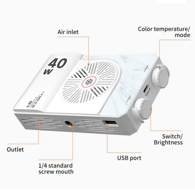كشاف الجيب القوي 40 وات ، خفيف ومحمول، يوفر لك إضاءة احترافية لتصوير الفيديوهات والصور مع بطارية قابلة للشحن تدوم طويلًا – الحل الأمثل لكل مصور ومبدع محتوى.