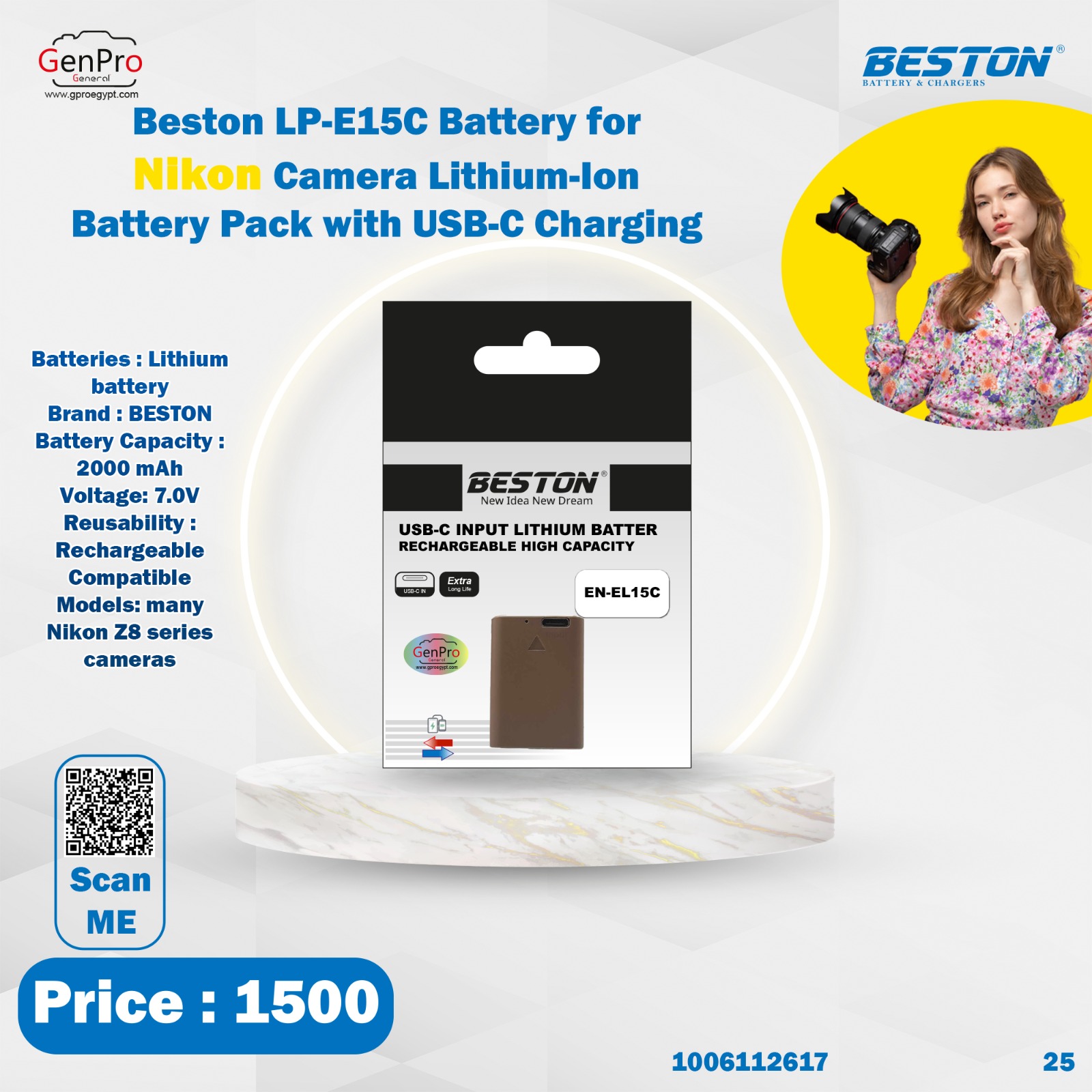 🔋 بطارية بيستون EN-EL15C تايب-سي نيكون – طاقة احترافية في كل لقطة!