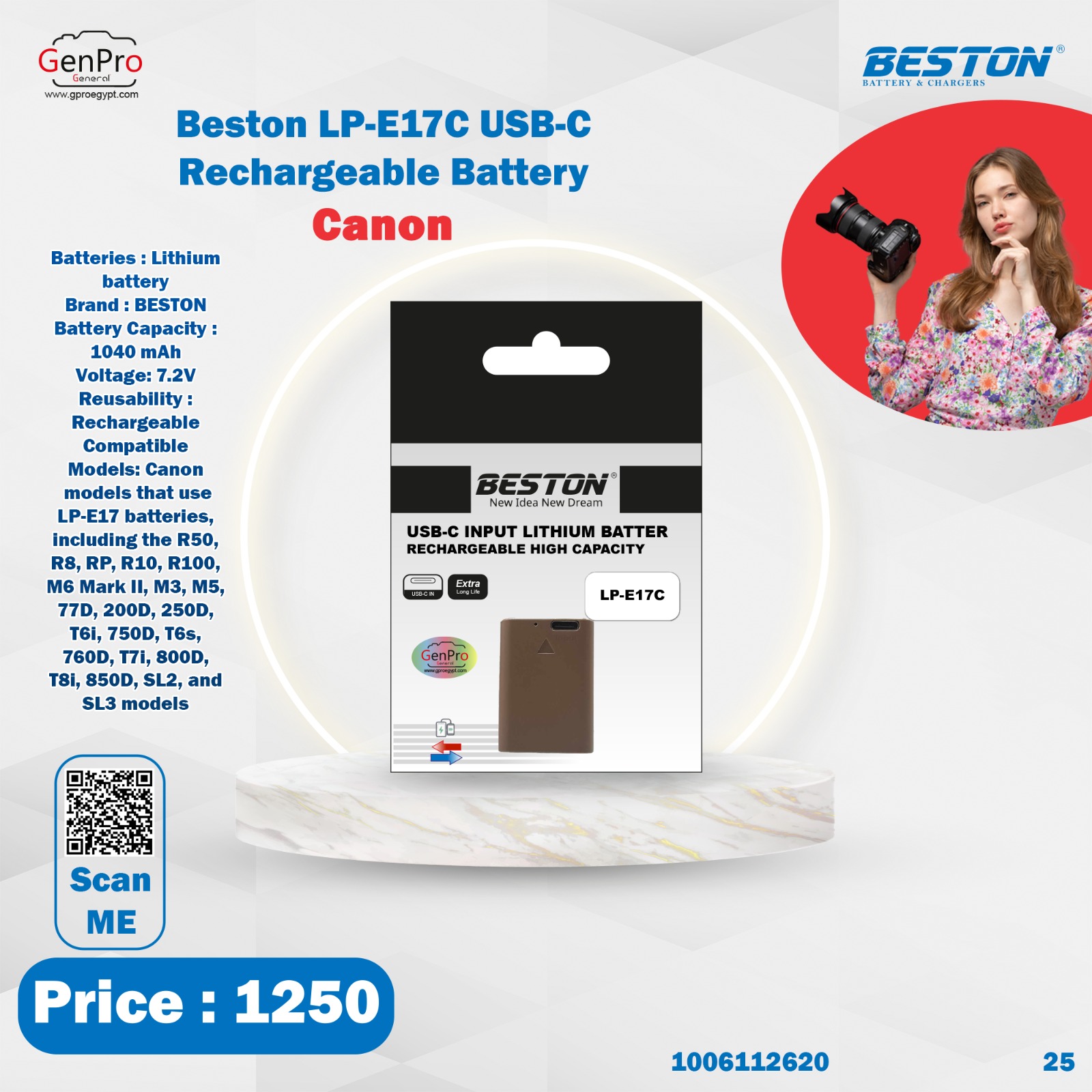🔋 بطارية بيستون E17 Type-C – طاقة ذكية وراحة في كل جلسة تصوير!