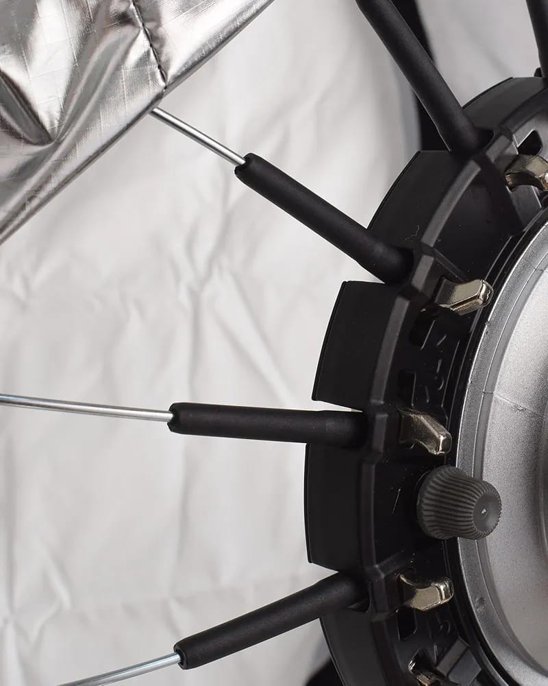 يحتوي على بطانة عاكسة فضية وقماش ديفيوزر عالي الجودة لتوزيع الإضاءة بشكل متوازن دون نقاط ضوء قوية أو ظلال مفرطة، ويتوافق مع معظم قواعد Bowens وأنظمة الفلاش الاستوديو الحديثة.